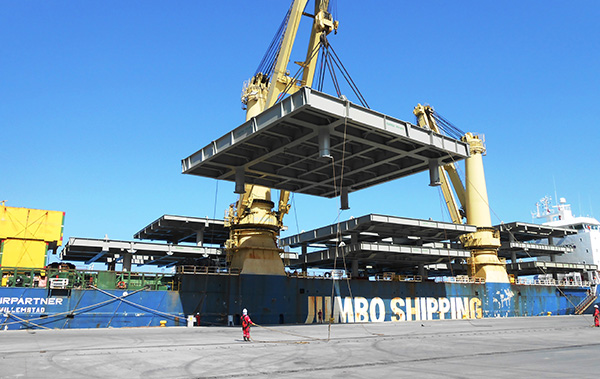 As the scope of TEKFEN Tekfen Manufacturing Ceyhan Facility,, structural steels of process modules, Flare Tower and pipe spools for P74 FPSO Platforms to be installed at Santos Basin Pre-salt Area off-shore, Franco Sul Field in Brazil, have been fabricated. In addition, fabrications of process modules for P74 FPSO at Santos Basin have been performed. Deck segments, Flare Tower including with Heat Shield Panels steel structures and pipe spool fabricated in Tekfen Manufacturing Ceyhan Facility, have been transported to Iskenderun Port by means of special vehicles, and their assembly have been performed over there at the port. Totally, 11 Process Modules of 3,000 tons in weight have been fabricated with legs and Flare Tower totally 340 tons with including process piping which are Duplex / Super Duplex, SS, LTCS, Cu/Ni and CS piping works and Heat Shield Panels handed over to customer within the scheduled time. The Weight of the completed process modules changes between 150 and 310 tons. Dimensions of the biggest module was; W: 29 x L: 22 x H: 4 m, and the weight was 310 tons.